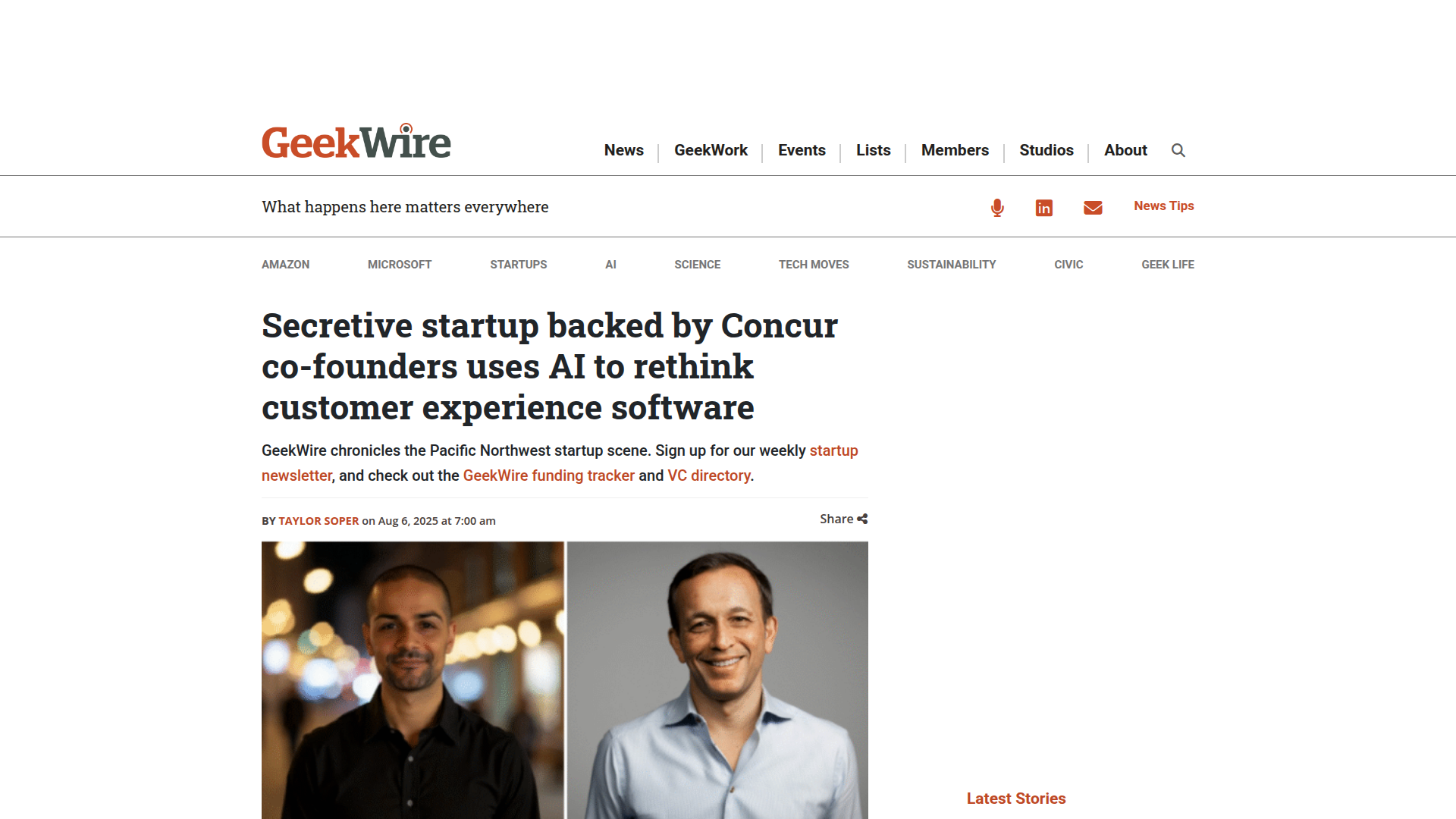 That headline is a lie in three acts. “Secretive” is laughable when the company has a website and LinkedIn breadcrumbs. “Backed by Concur co-founders” is just name-dropping without a dollar attached. “Rethink customer experience software” is empty perfume, not a claim.